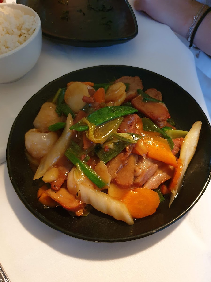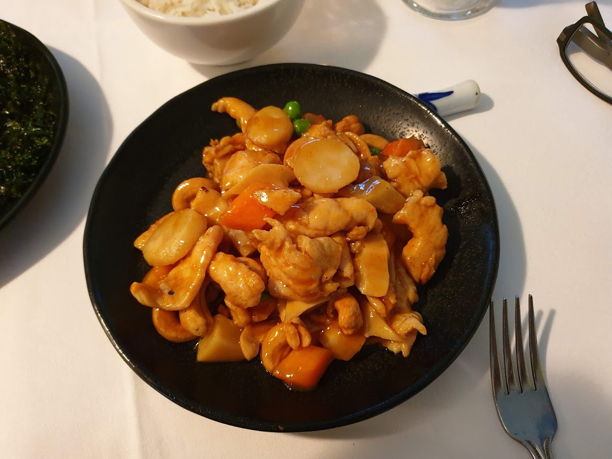 “Very friendly and fast service. We wanted to dine in but the restaurant is under renovation so they were only doing takeaway. We are visiting from the States and I had heard Chinese food is very different in England. So I played it safe and ordered sweet and sour chicken. It was delicious and very much like I have had at home except cleaner and fresher tasting. I should have gotten a side of rice to go with. Hubby got cashew chicken and special fried rice. He didn't love it as much as my choice. The special rice was very good and fresh but we kind of missed the onion, garlic and soy sauce but I'll bet there isn't any other place nearby that does it better. Would gladly go back again. If you are a big eater get an extra entre or side. Good value for the price though. The French music playing in the lobby was fun but the volume was too loud.”